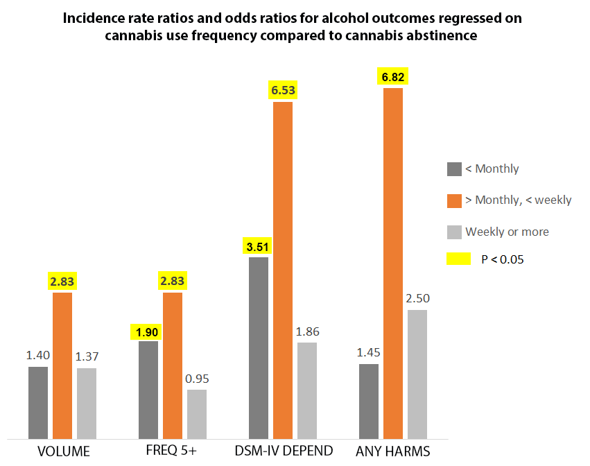 Subbaraman, M.S., Barnett, S.B., Karriker-Jaffe, K. (2019). Risks associated with mid-level cannabis use among people treated for alcohol use disorder. Alcoholism: Clinical and Experimental Research: https://onlinelibrary.wiley.com/doi/abs/10.1111/acer.13973