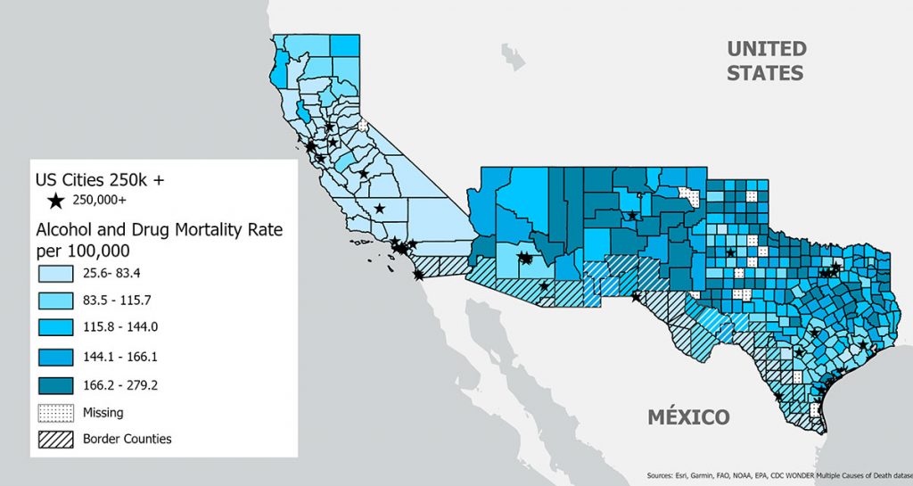 “People think of border communities as places where crime is rampant, drug trafficking is common, and alcohol and drugs are easy to obtain. These ideas have informed the current federal enforcement practices that designate almost all border communities as high intensity drug trafficking areas. However, what we are finding is that deaths related to alcohol and drugs are actually lower, not higher, in border communities,” said Sarah E. Zemore, study author and senior scientist at ARG.